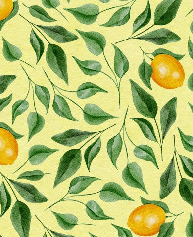 Dieses Design zeigt ein Aquarellmuster mit Zitronen und grünen Blättern.