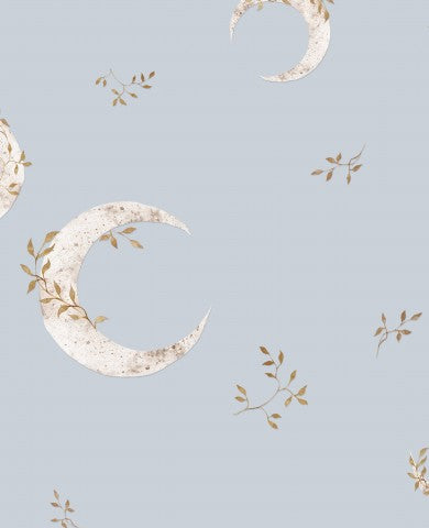 French Terry eine nahtlose Tapete mit Halbmond und Blättern