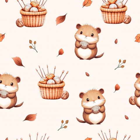 SoftShell Muster eines süßen Hamsters mit Korb und Herbstblättern