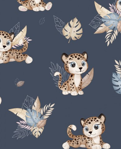Rib Jersey niedlichen Leoparden und Blättern