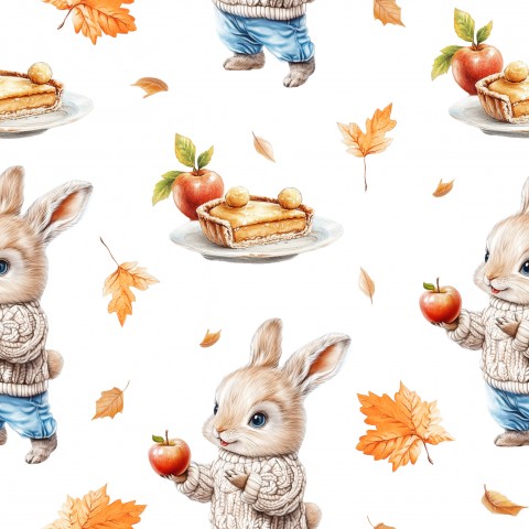 Dieses Design zeigt ein nahtloses Muster mit Aquarellhasen und Äpfeln.