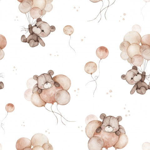 Dieses Design zeigt ein nahtloses Muster mit Teddybären und Luftballons.