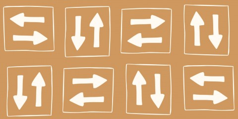 Dieses Design zeigt einen braunen Hintergrund mit weißen Pfeilen, die in verschiedene Richtungen zeigen.