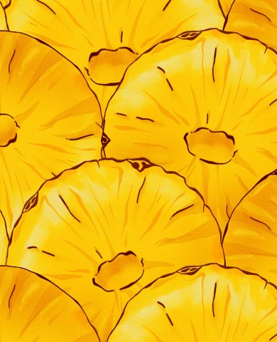 French Terry Muster aus Ananasscheiben auf gelbem Hintergrund