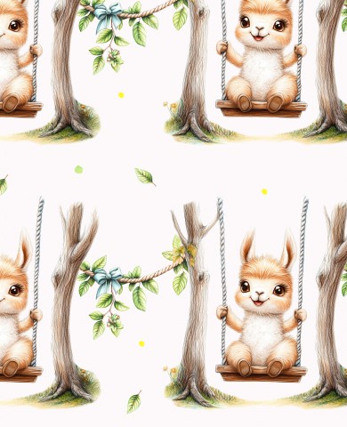 Dieses Design zeigt ein nahtloses Muster mit niedlichen Tieren auf einer Schaukel.