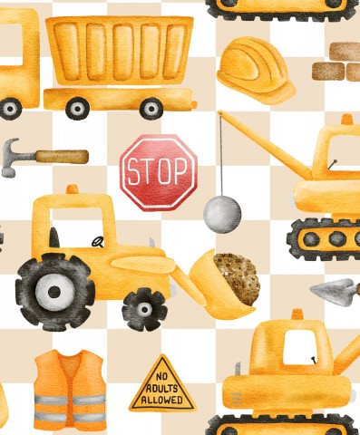 Rib Jersey einer Aquarellillustration von Baufahrzeugen
