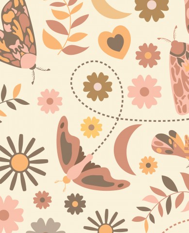 Dieses Design zeigt ein nahtloses Muster mit Schmetterlingen und Blumen.