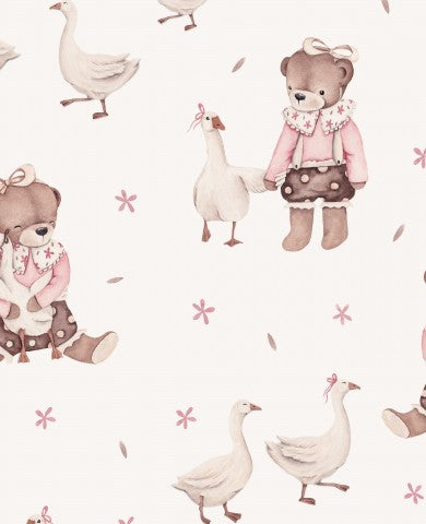Dieses Design zeigt ein nahtloses Muster mit Teddybären und Enten.