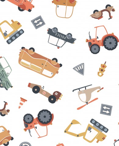 Dieses Design zeigt ein nahtloses Muster mit Autos, Lastwagen und anderen Fahrzeugen.