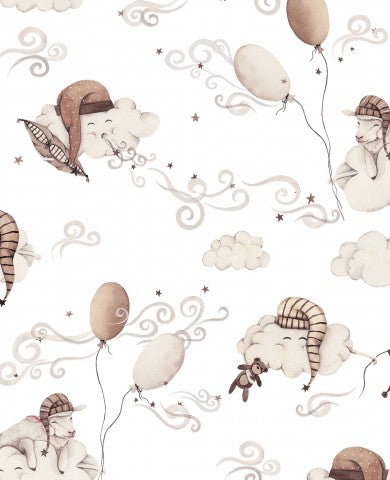 Dieses Design zeigt ein nahtloses Muster mit Cartoon-Tieren und Luftballons.