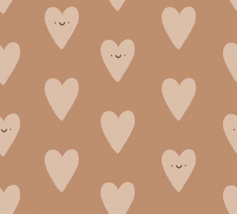 Dieses Design zeigt ein nahtloses Muster mit Herzen auf braunem Hintergrund.