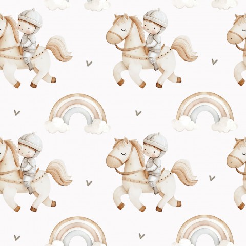 Dieses Design zeigt ein nahtloses Muster mit einem Ritter auf einem Pferd.