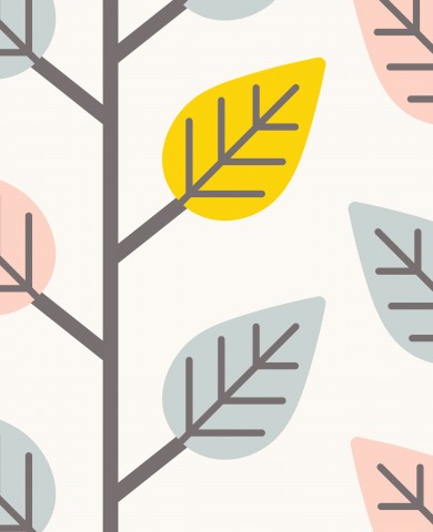 Dieses Design zeigt ein Muster mit Blättern auf weißem Hintergrund.