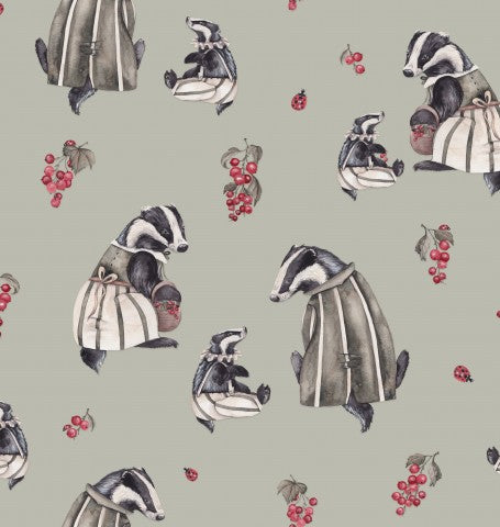 Dieses Design zeigt ein Muster mit Dachsen und Beeren darauf.