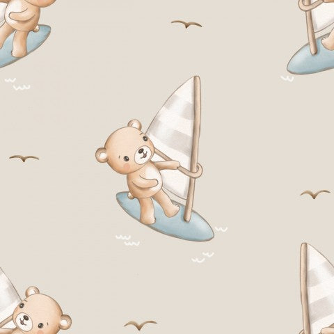 Wasserdichter Stoff Teddybären auf einem Segelboot