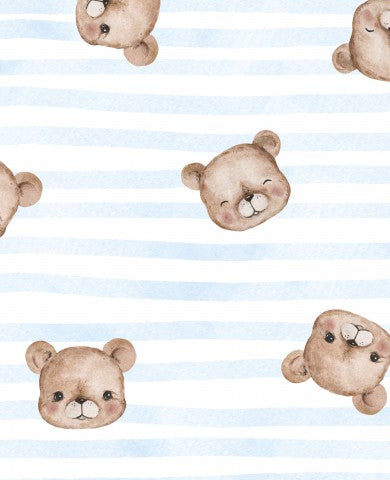Satin Baumwolle ein Aquarellbärenmuster auf einem blau-weiß gestreiften Hintergrund