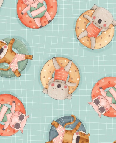Dieses Design zeigt ein nahtloses Muster mit niedlichen Tieren auf Aufblasartikeln.
