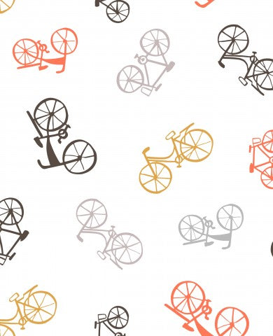 Dieses Design zeigt ein nahtloses Muster mit Fahrrädern auf weißem Hintergrund.