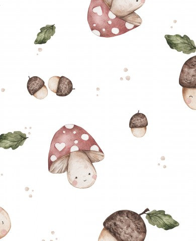 Rib Jersey Aquarellmuster mit niedlichen Pilzen und Eicheln